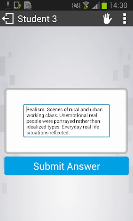 Teachers can use the MimioMobile app to control their interactive whiteboard and display lessons in MimioStudio classroom software from anywhere in the room. They can easily hand off control to any student using a tablet or smartphone equipped with the free MimioMobile app. Using the Collaborate feature of MimioStudio software, students can work interactively in small groups on their mobile devices, and their work will be displayed on the interactive whiteboard in up to nine collaborative spaces. The MimioMobile app can also be used by students for multiple choice and open-response assessment.