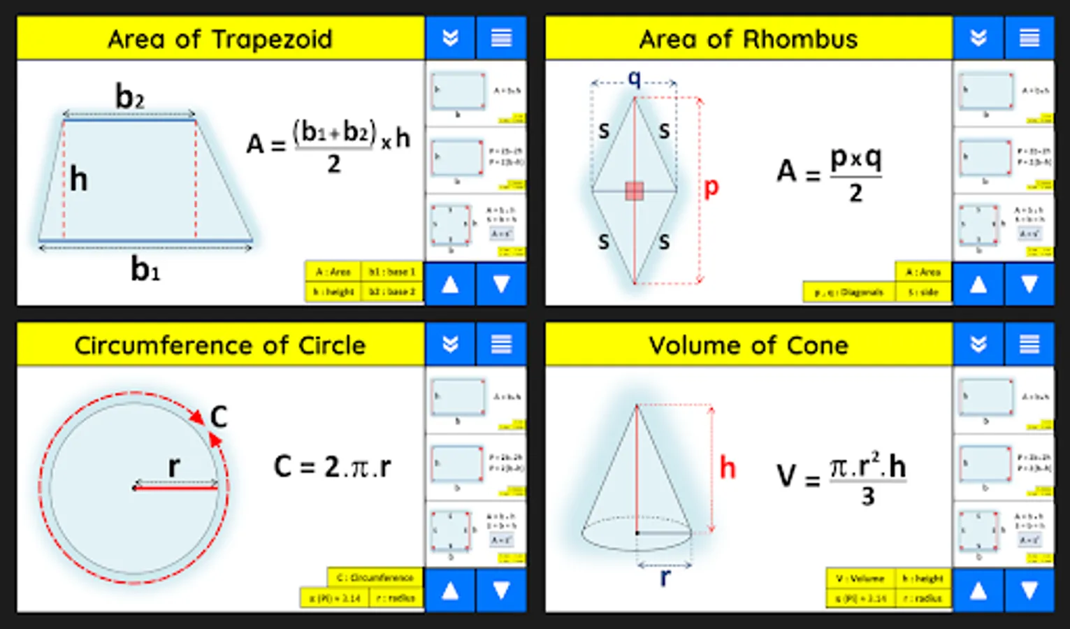 "Geometry for middle school" , is an amazing app that helps middle school students in geometry rules. Every geometric shape was clearly drawn with the rule beside.