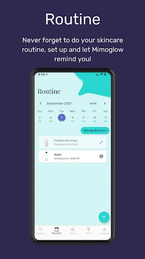Routine: Add products from your shelf to a routine, you can have as many routines as you would like. Mimoglow notifies you when your routine time starts. If you did not use a product, just uncheck that product. If you want to add a product to a routine (like a sheet mask), you can add it directly when you start a routine. If you did a routine in a different order, use long press to reorder your products.