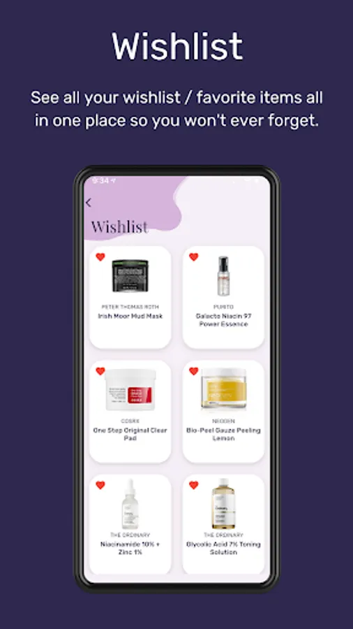 Wishlist: Have a product someone recommended but you don’t wanna forget? Heart the product from search, and all Wishlist products are kept under your accounts setting.