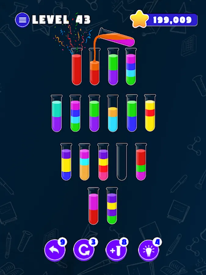 This liquid water sort game will surely enhance your IQ level as well as kill boredom. This amazing color water match master will hook you for hours. All in one, isn’t it cool? Download this free sort and color game and enjoy liquid sorting all day.