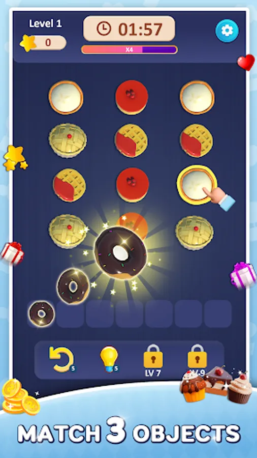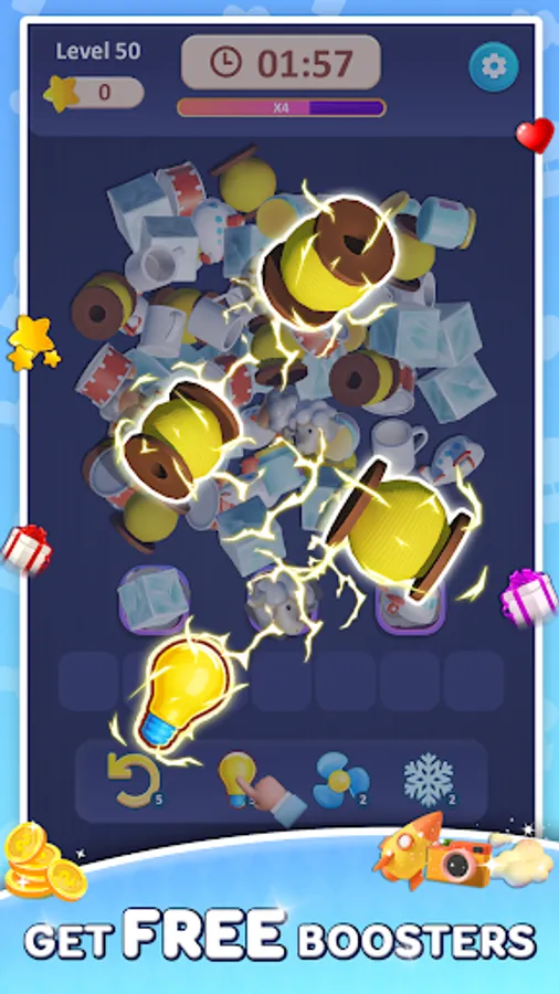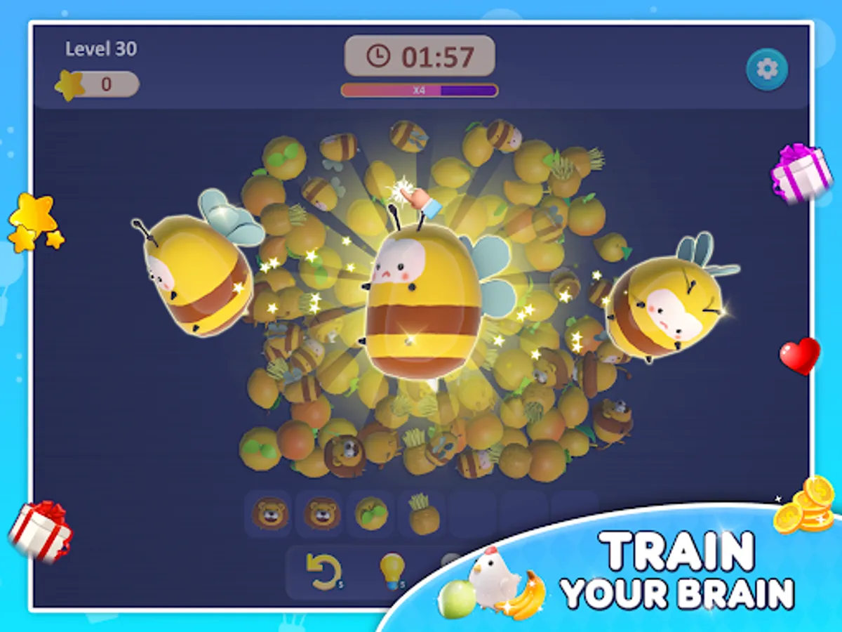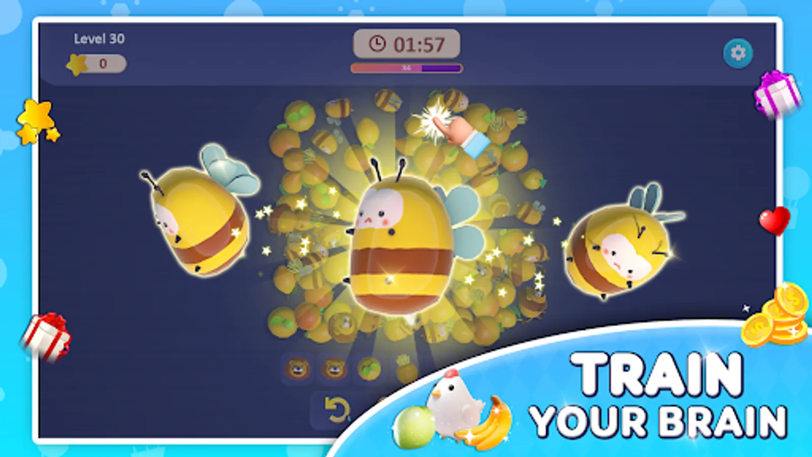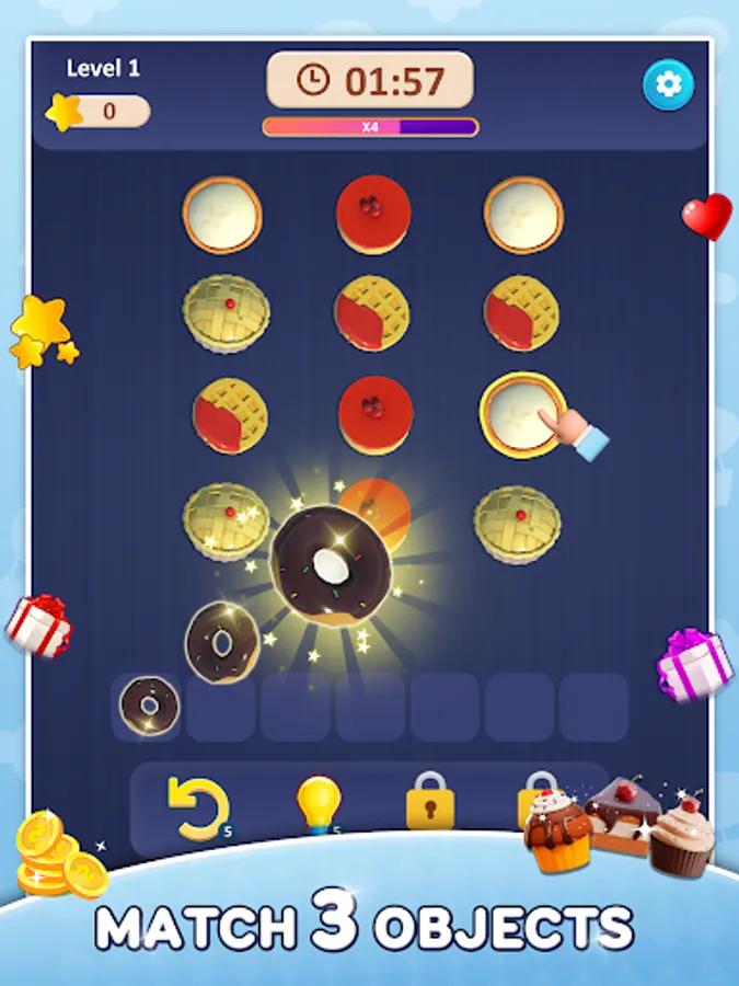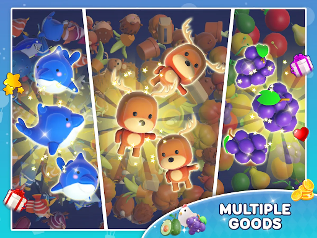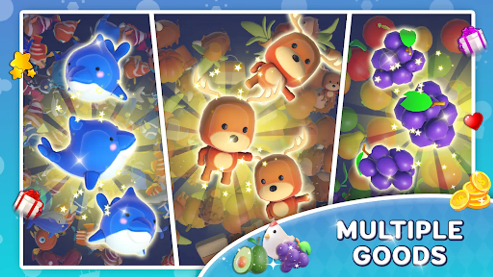 😛 Just tap to pick 3D items into the box. Three of the same items will be combined and you win a reward. Collect all the objects as quickly as possible.