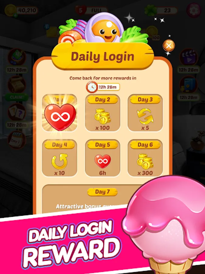 Immerse yourself in a world of sweet treats with Sweetie Match, a match-3 game where you must group desserts of the same shape or color to crush them, score points, solve puzzles and level up. Join the Journey to decorate and paint your rooms. With its enjoyable gameplay, a range of challenges, powerful boosters, and impressive graphics, Sweetie Match offers an unparalleled puzzle gaming experience.