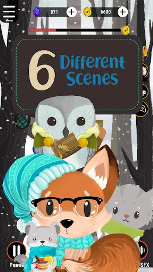 * The Snow Forest features a wide-eyed baby fox. ( Owl Sound, Wolf Sound, Wind Sound, forest Sound)