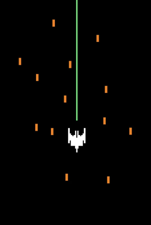 A pilot named Kris-10 went on an exploration to another planet to find a cassette tape containing information about her deceased husband. Armed and ready she ventured out to the planet to find nothing. During the exploration her ship the Ridder-23 was captured by an unknown cargo shuttle. Distraught by not having a ship to return home to she found a smaller ship on the planet and with a few tweaks and fixes the ship activated with enough power to track down the Ridder-23. Kris-10 found and infiltrated the unknown cargo shuttle where she then searched every storage unit that could have housed her ship. While on the search she ran into a room which contained what appeared to be the cassette tape she was looking for! Kris-10 swiped the cassette tape triggering an alarm. On the run she also found the Ridder-23! She hopped on her ship and escaped! The unknown cargo shuttle then fired a circus of missiles towards her aiming to kill. Now she must evade the missiles to get away or face a fate similar to that of her husband!