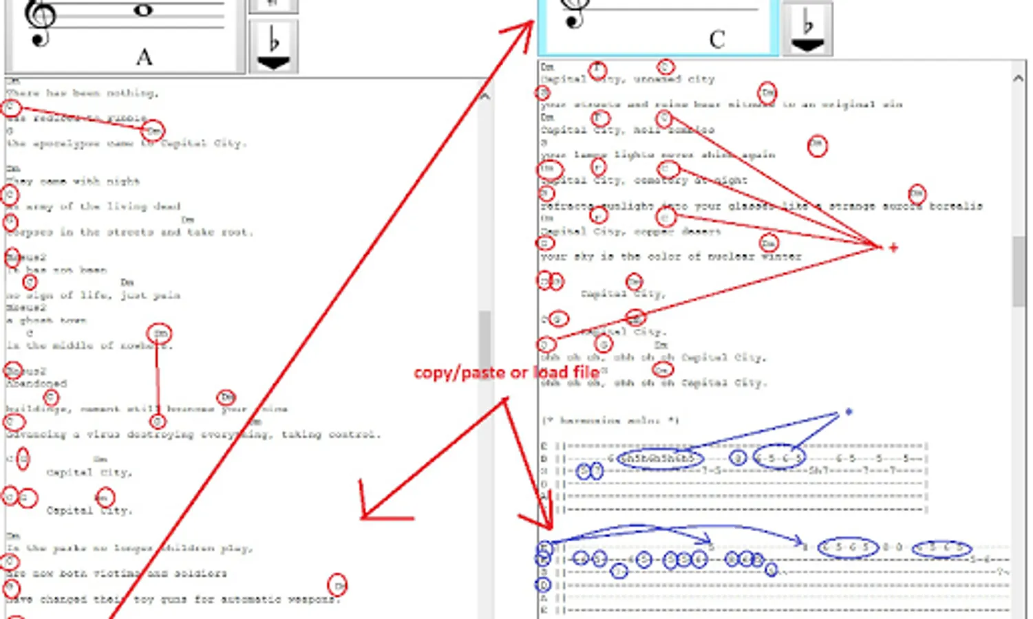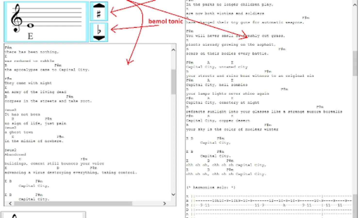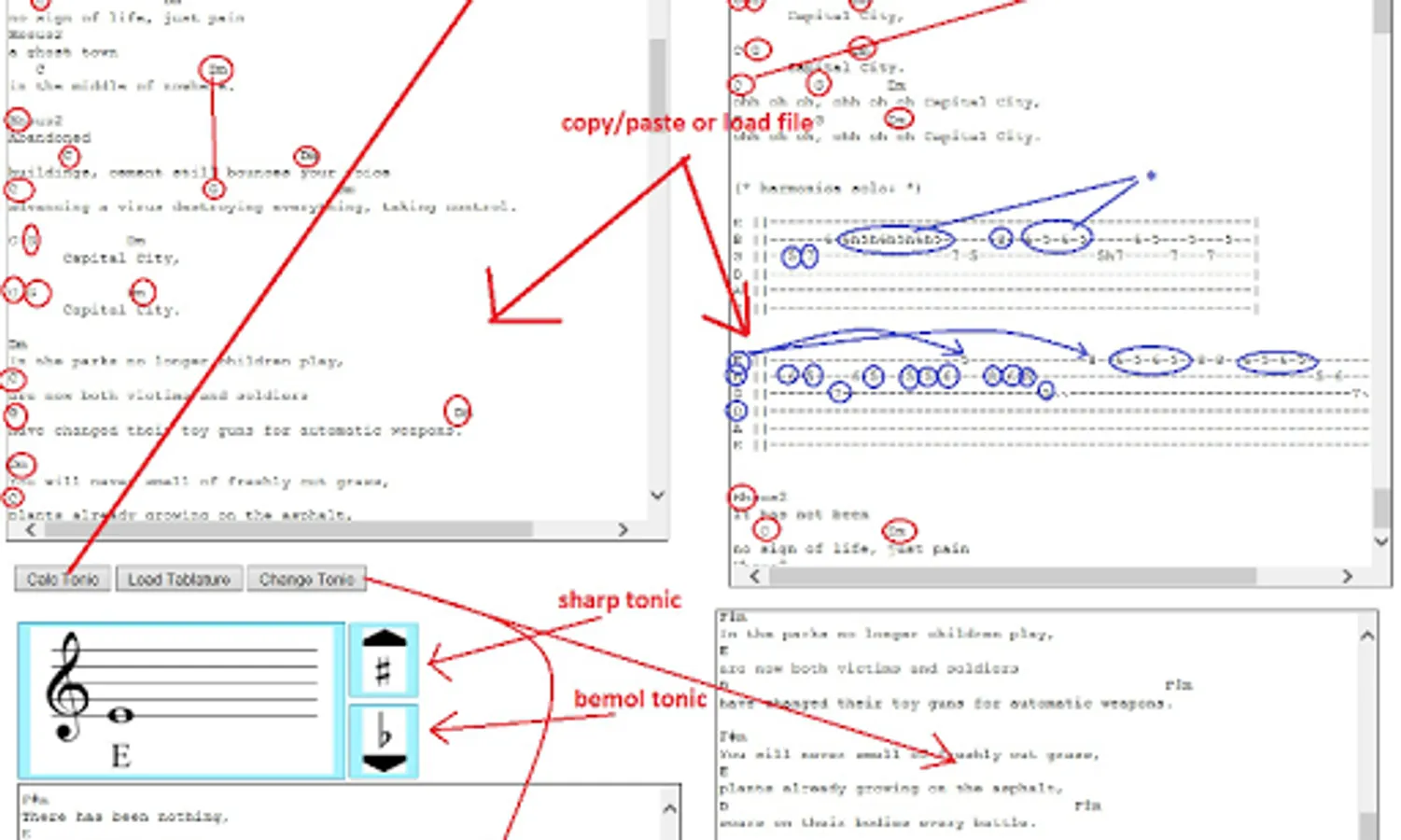 Tune Tabs lets you know the tonality of a tab. You can also regenerate the tab in a different tonic. Both chords, riffs and arpeggios.