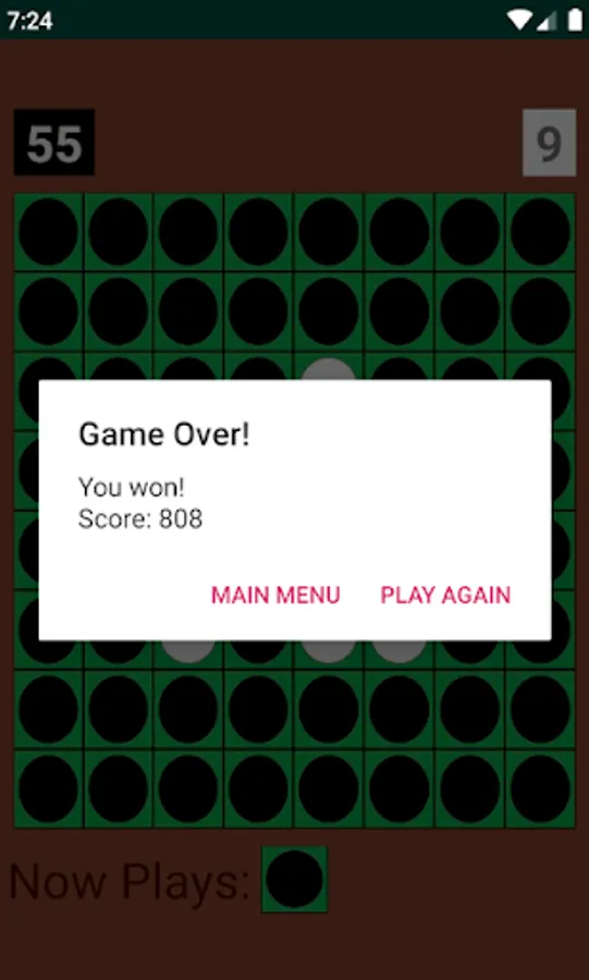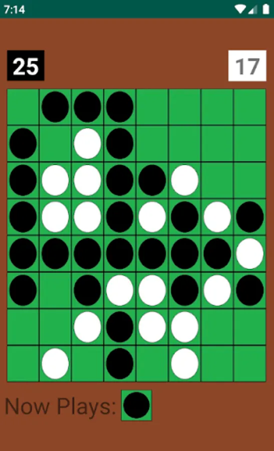 When it is no longer possible for either player to move, the game is over. The tiles are now counted and the player with the majority of his or her color tiles on the board is the winner (a tie is possible).