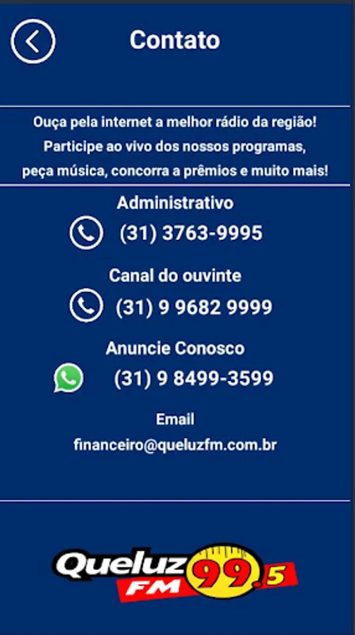 Listen for our application the best Counselor Lafaiete radio and region, Radio FM Queluz!