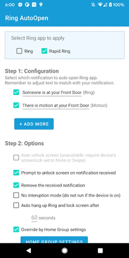 This app will auto open Ring or Rapid Ring app to live view when there is motion or doorbell ring at your Front Door.
