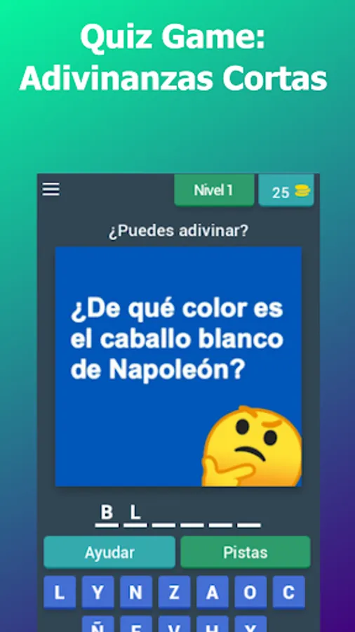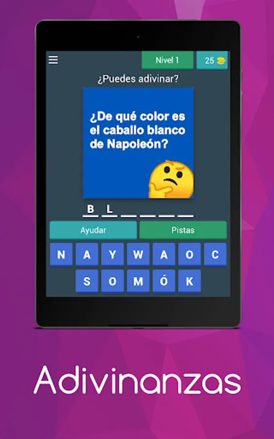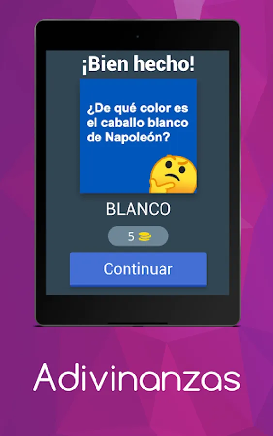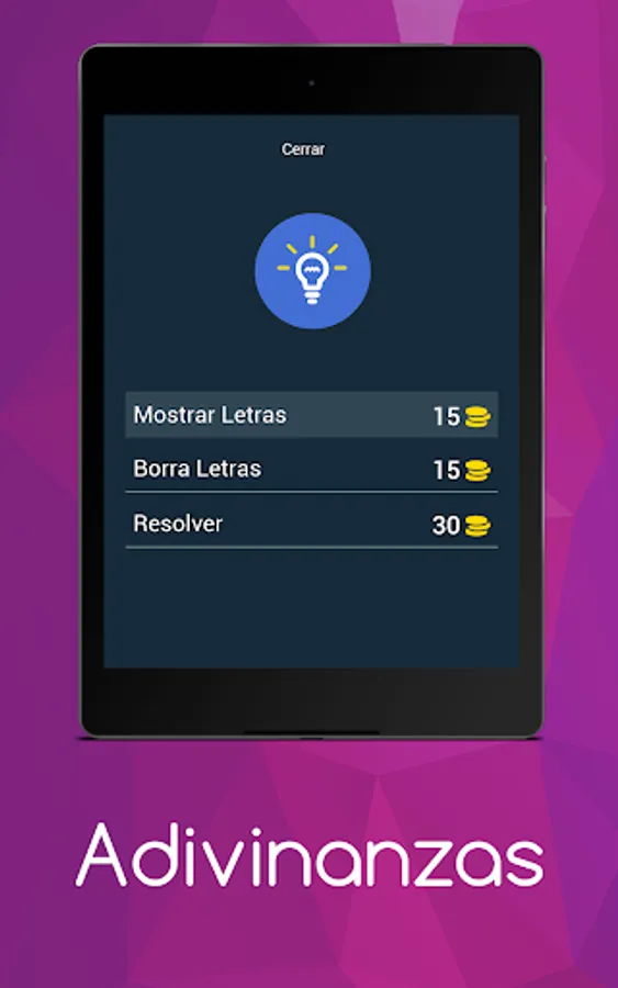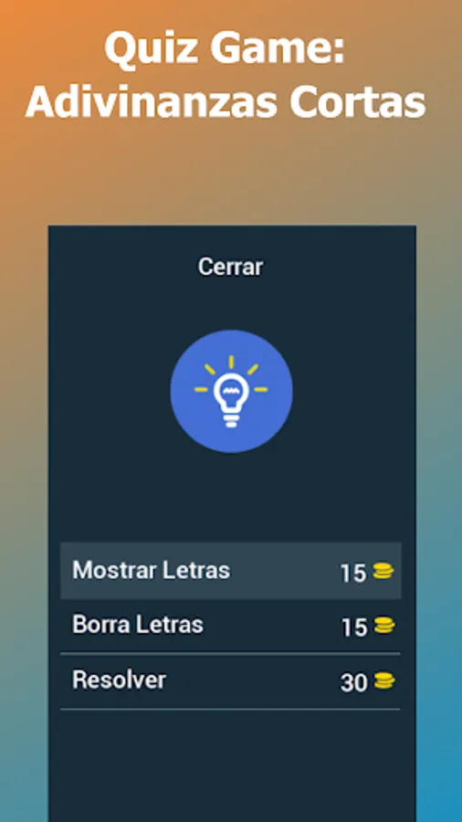 Every time you guess a level you will receive some coins that will later help you to pass levels that you cannot, if you make a mistake you will only have to try again, you can still ask your friends for help and get coins by sharing on social networks. Only when you complete a level will the next one open for you, if you can't with a level use the small aids that cost some coins.