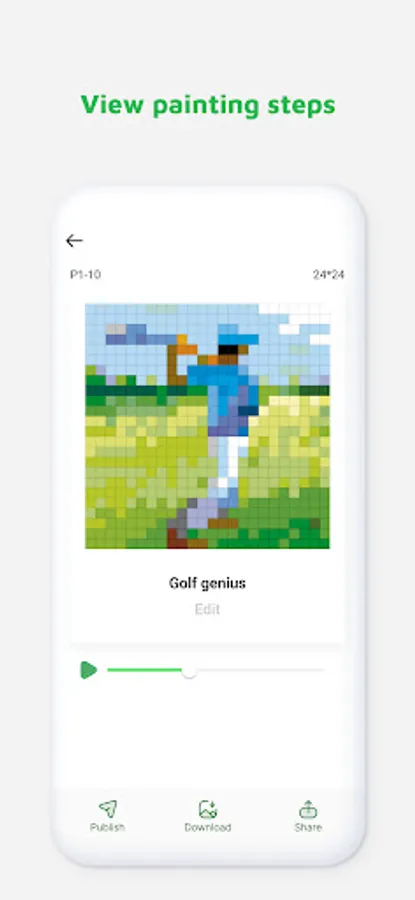 Pixel ladder is the auxiliary software of minbay Pixel Artboard. After connecting through Bluetooth, the Pixel ladder can back up all the paintings in the Pixel Artboard. and view the painting steps. You can also share the paintings with other users, or share them with other APP, such as Facebook, instagram, etc.