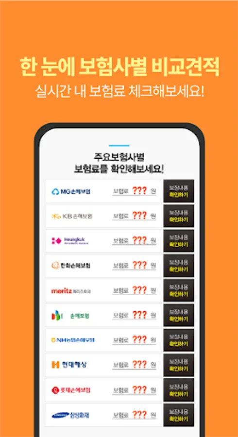 You can check all the information you want to know about real life insurance by simply entering information without a separate membership registration process. Easy to sign up, try to solve all the non-renewal insurance price comparison direct app!