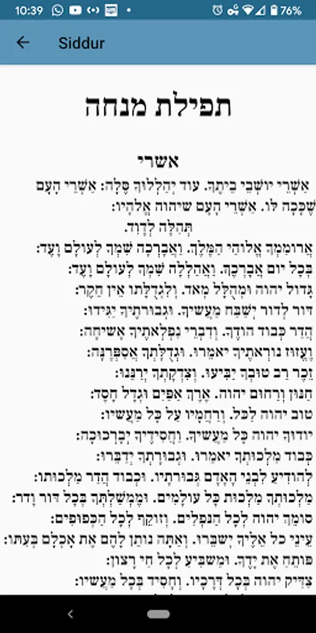 Ready to daven? One click opens a Smart Siddur with Mincha. MinchaManager knows the Hebrew Date and understands the Hebrew Calendar so seasonal additions like yaleh v'yavo can be highlighted and you won't forget them. The siddur is available in nusachim Ashkenaz, Ari (Chabad), and Edot Hamizrach (Sephardi).