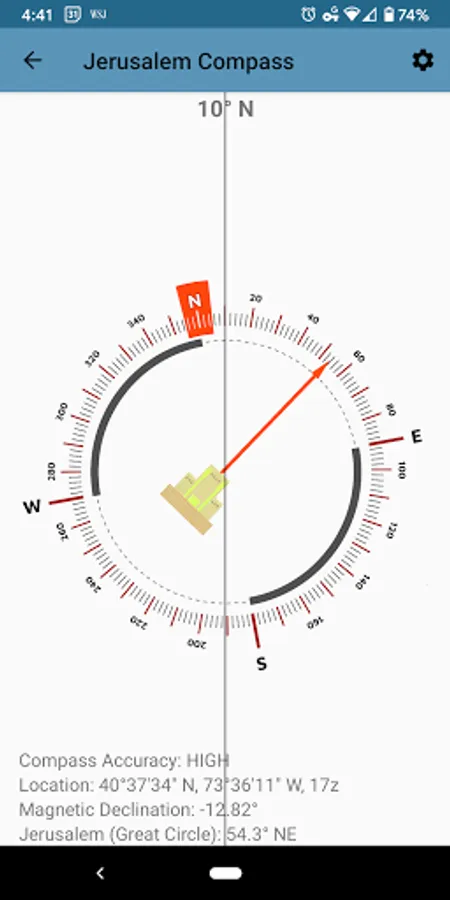 A Halachic Compass let's you know which way to face. It supports Great Circle (geodesic), Rhumb Line (Loxodrome), and Due East methods. It uses your location to properly account for magnetic declination (which could otherwise cause a compass to point up to 30 degrees off).