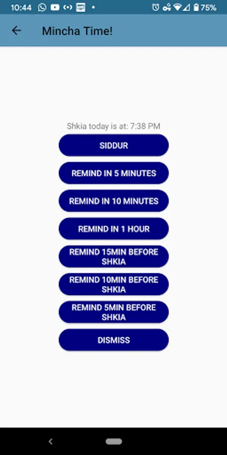 Weekday alarms can be snoozed if the time isn't opportune, or dismissed, if you've already davened.