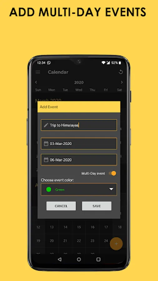 If you want a simple calendar app which just shows the dates and allows you to add your own custom events, then calendula is just for you!
