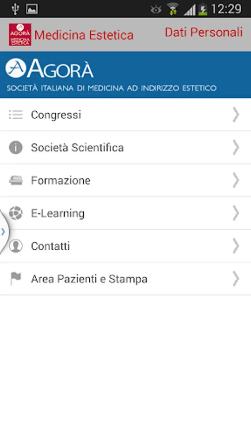 Application of Agora - Italian Society of Aesthetic Medicine, allows you to enjoy the content of the Congress of Aesthetic Medicine, the journal of the Platform and E-Learning