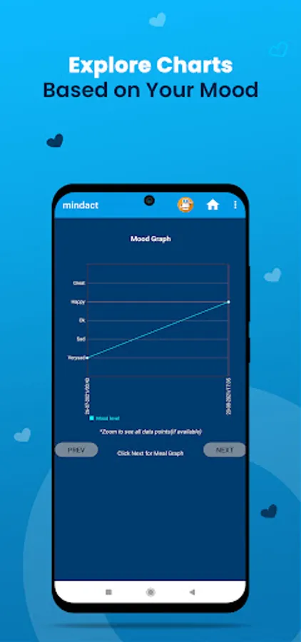Mindact provides quick tips to relax. With minimal user input via personality tests and mood checks, the app lets the user watch their behavioral pattern through graphs and scores. The app also provides suggestions for better mental health.