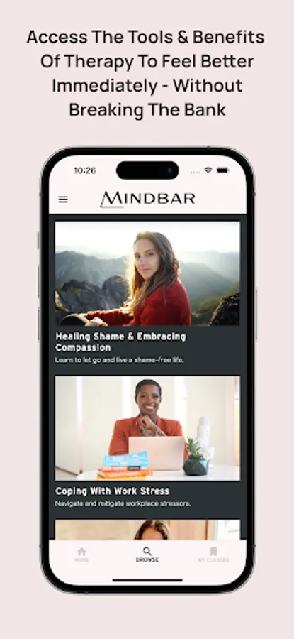 MindBar is the most affordable and convenient way to access the tools and benefits of therapy. We've spent years vetting the world's best therapists, counselors, and coaches across 8 different mental health categories and creating therapy classes based on the most common issues they see in their one-on-one sessions. From stress & anxiety to relationships, grief, trauma, spirituality, self-esteem, body-image and family planning - we've got you covered.