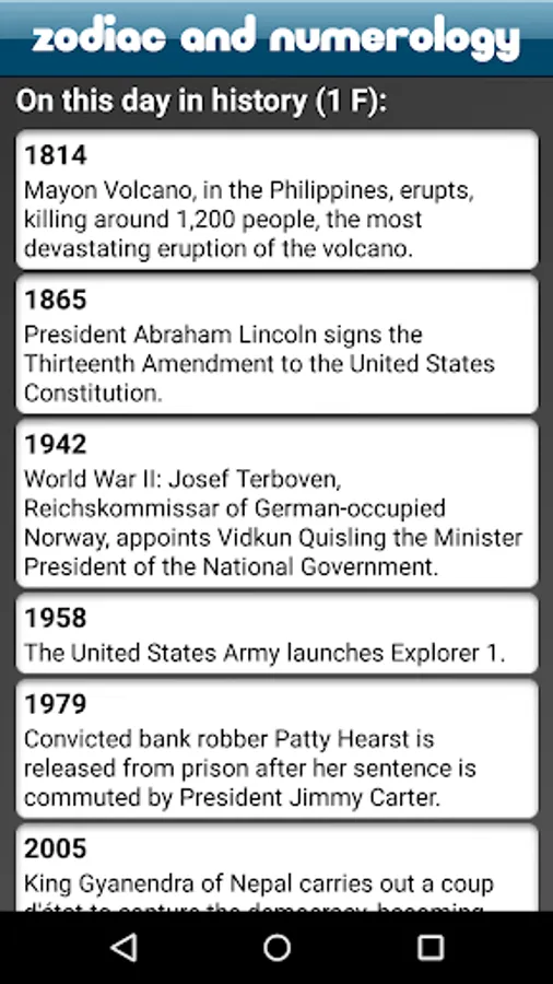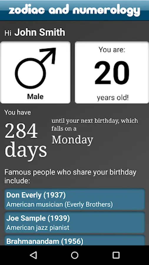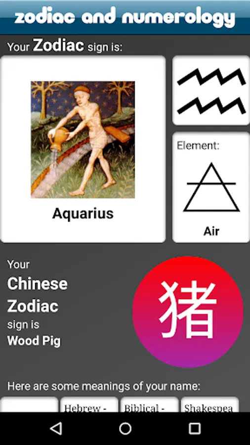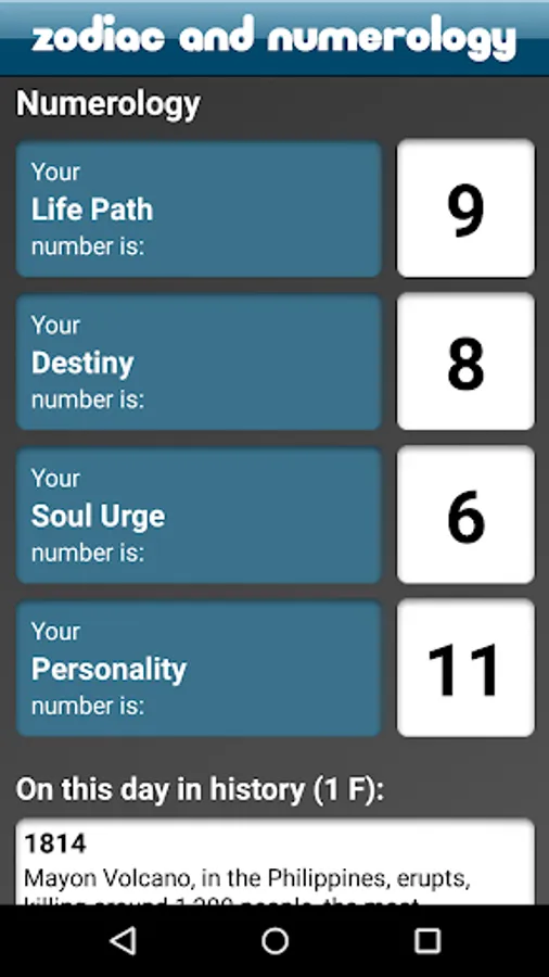 Containing information about your zodiac, chinese zodiac, birthstones, birthflowers, famous birthdays, historical events, numerology information and name meanings, About You! is the most fully-featured numerology and astrology app on the market.