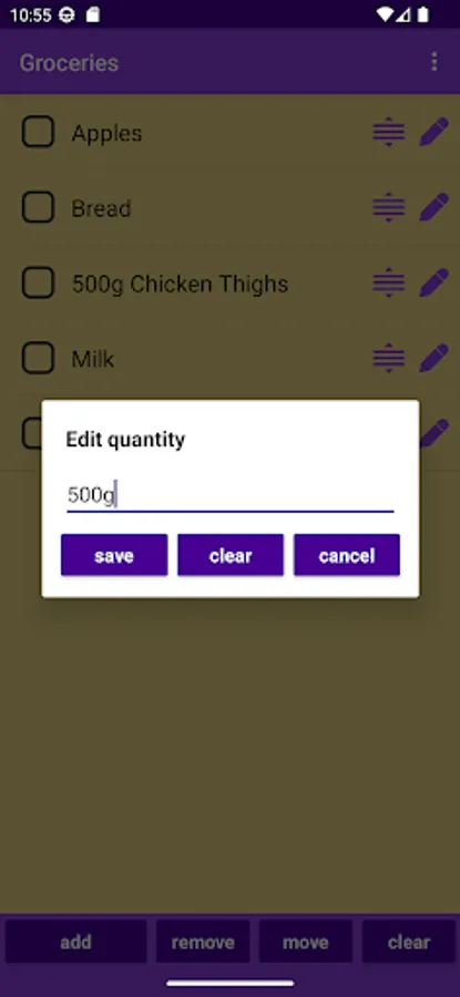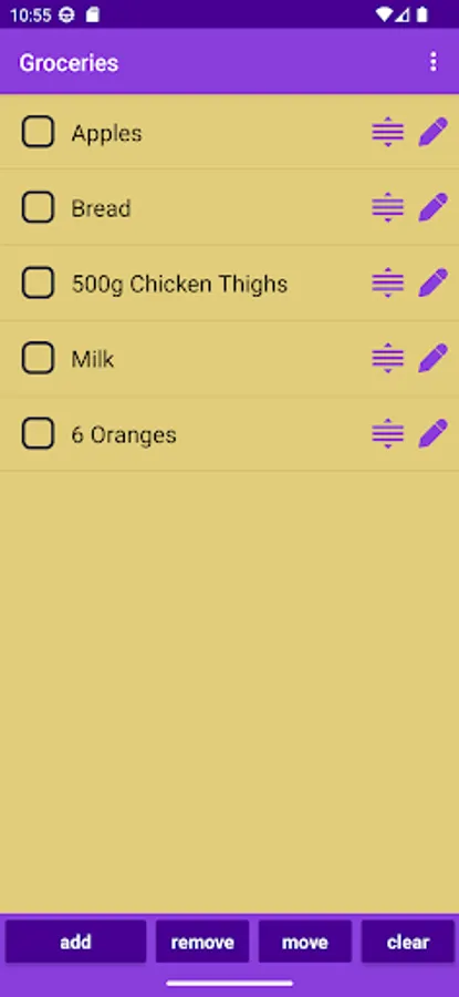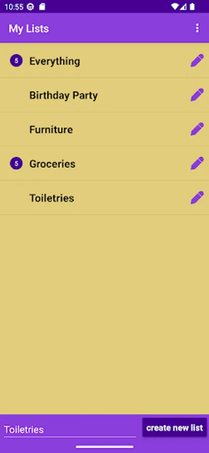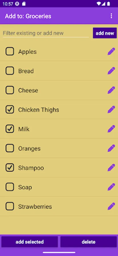 Choose from an editable item database - add your own items, create your list and check them off when bought/done!