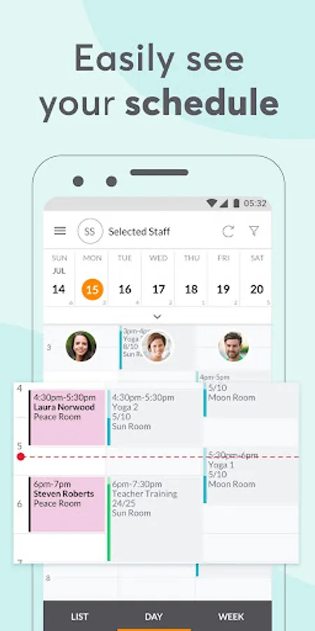 - Browse your schedule of classes and appointments for you and your staff