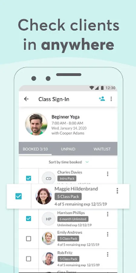 - Sign clients in to class and manage waitlists