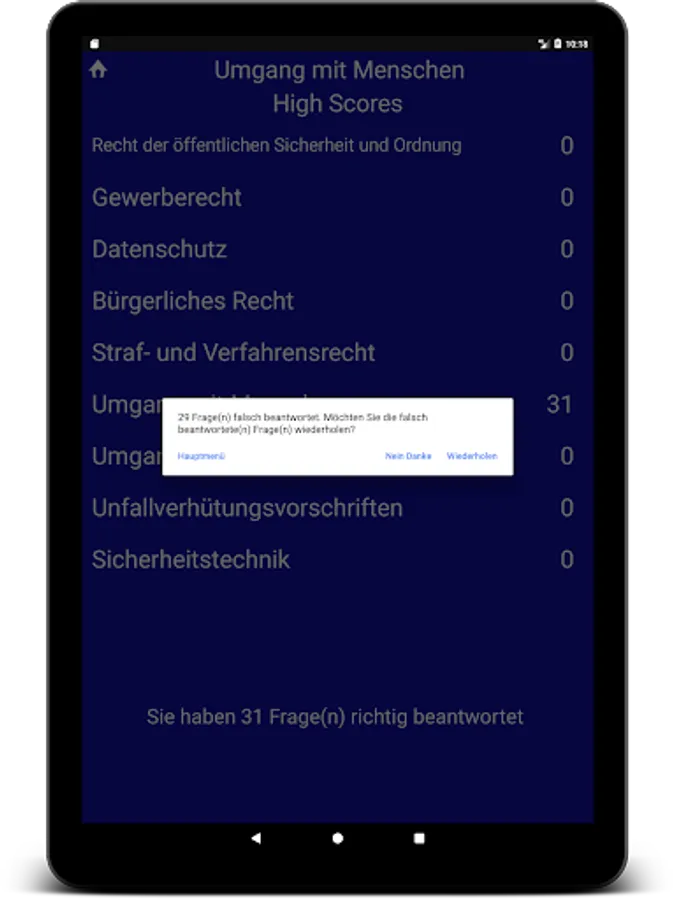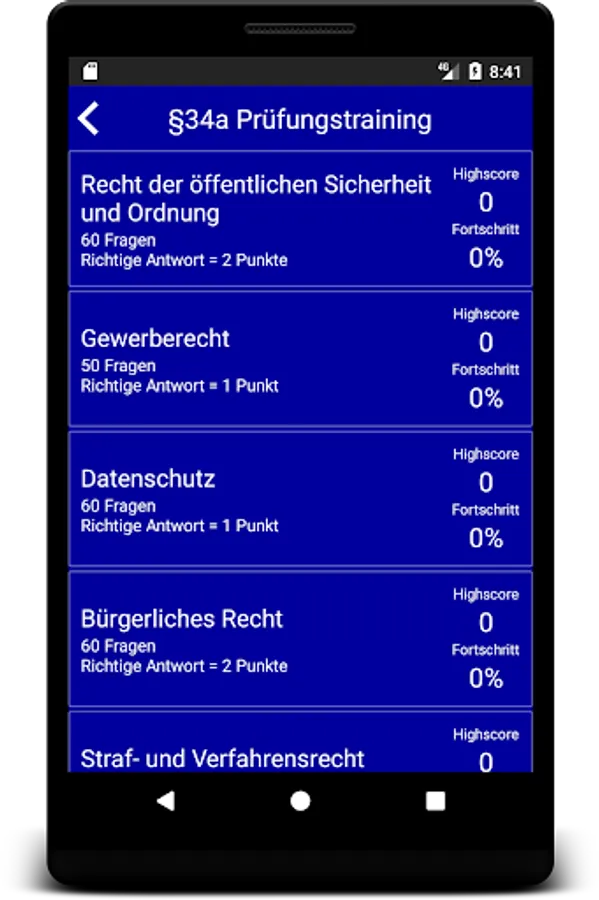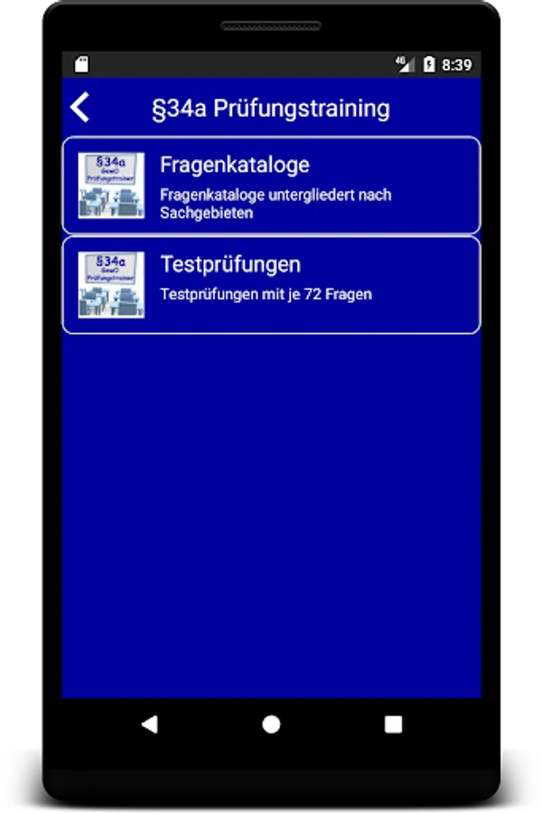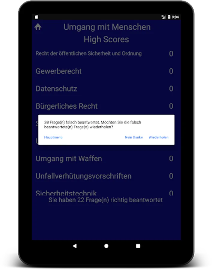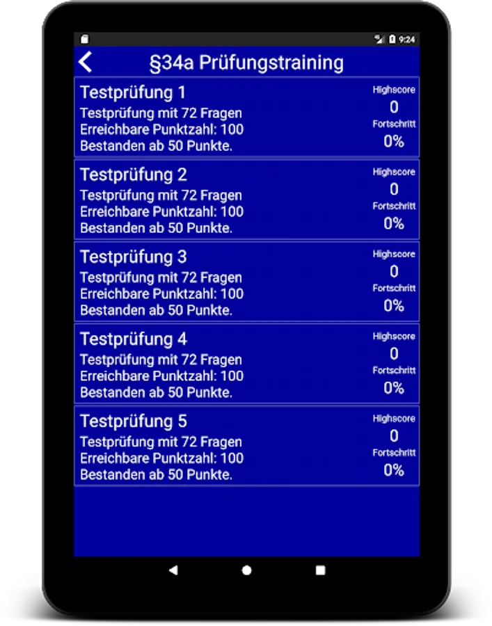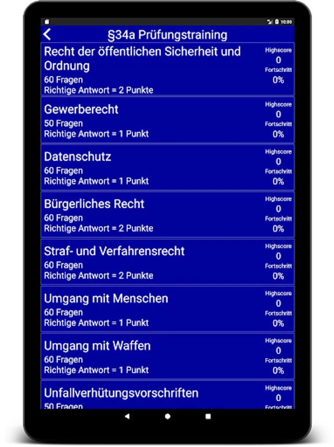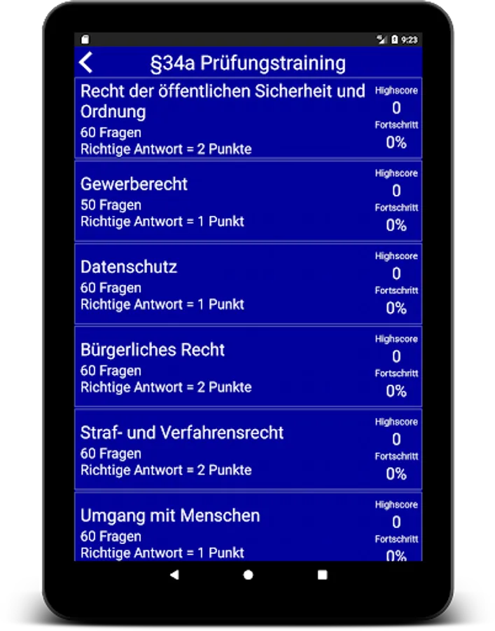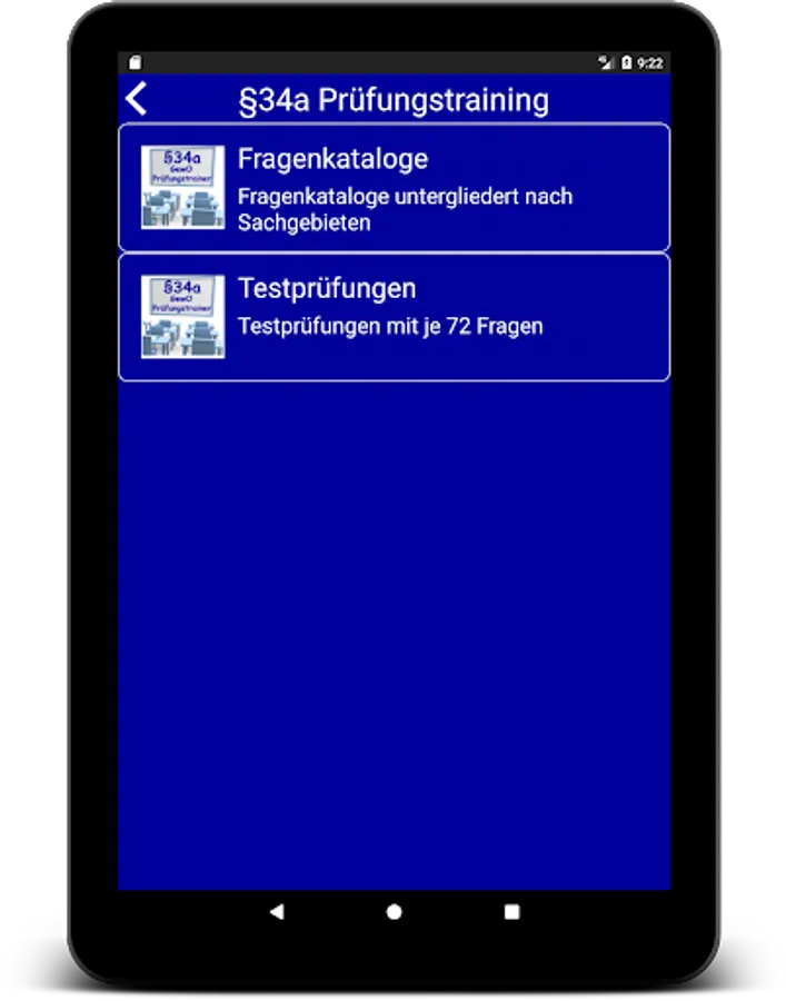 The 34a examination trainer supports you in preparing for the expert examination according to §34a GewO for the security industry.