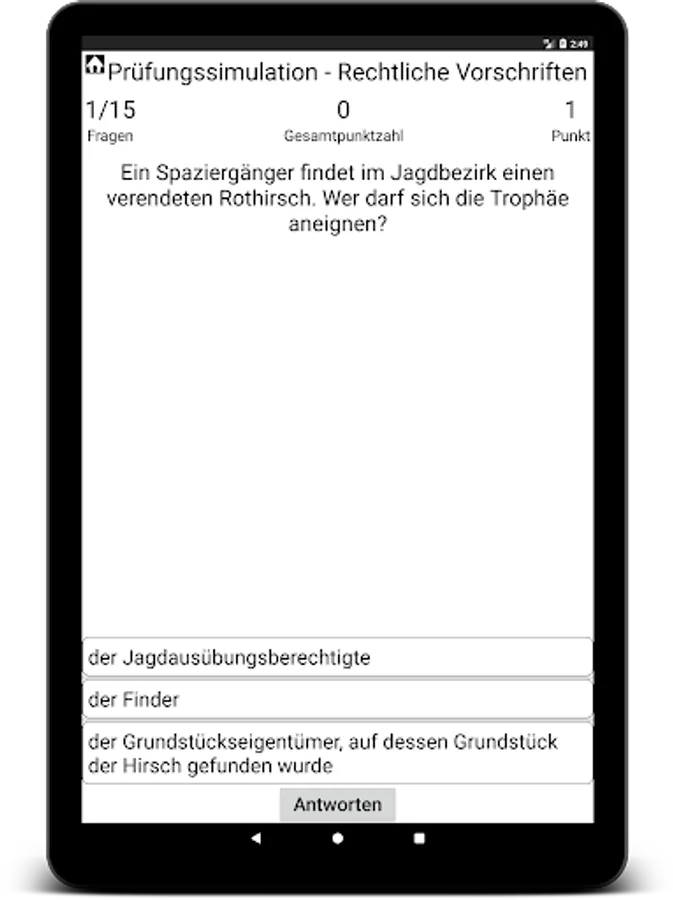 The hunting license Trainer Brandenburg supports you in the preparation for your written hunting exam in Brandenburg.