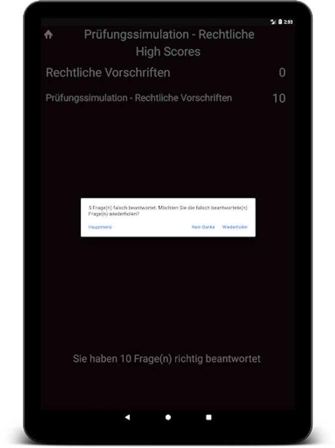 The questionnaires of the 6 subject areas consist of multiple choice questions, whereby only one answer is correct.