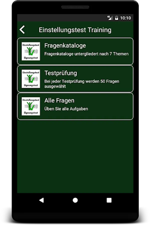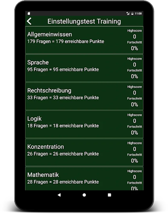 The trainer / aptitude test trainer helps you to prepare for upcoming aptitude tests or performance tests.