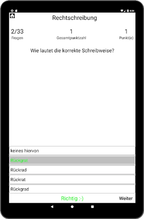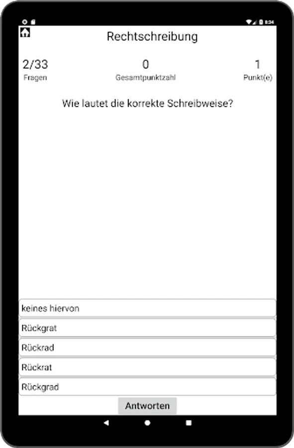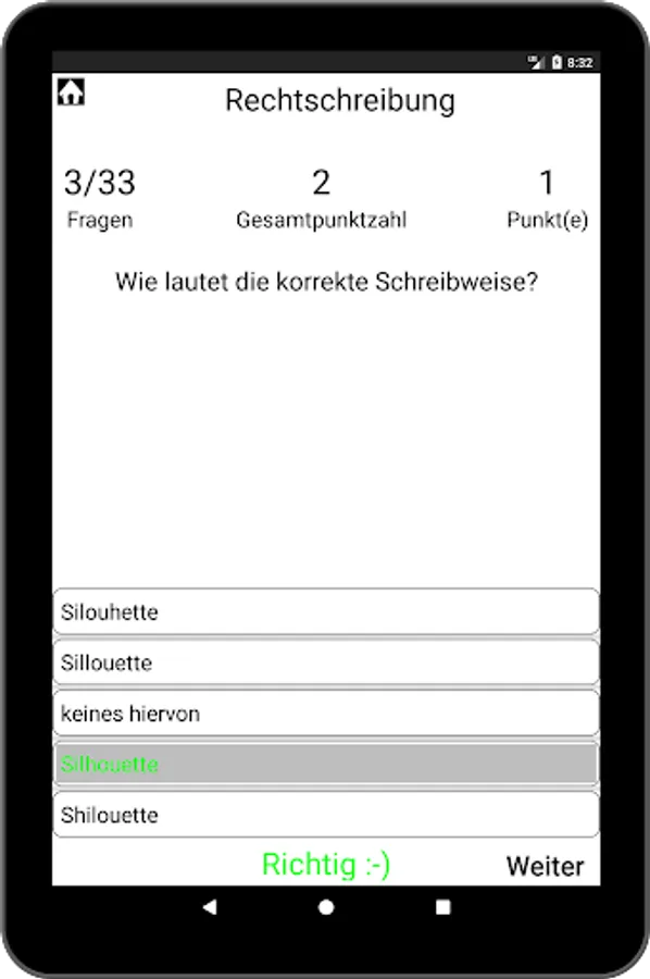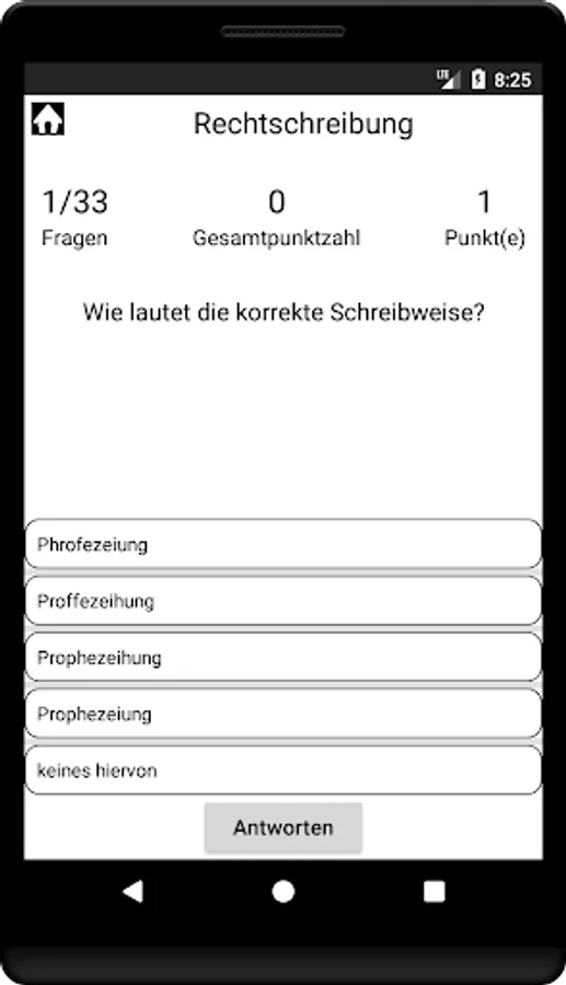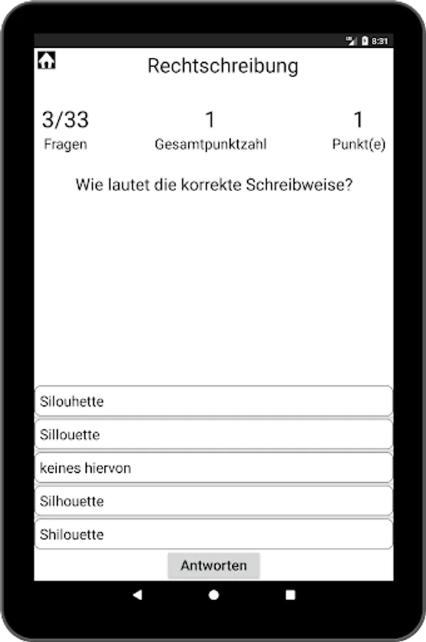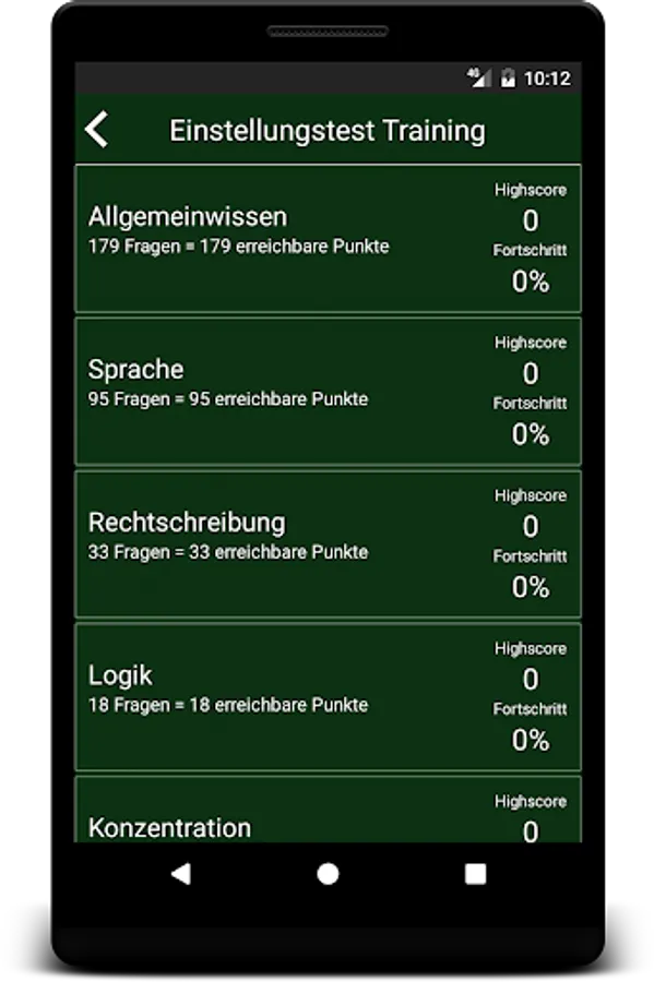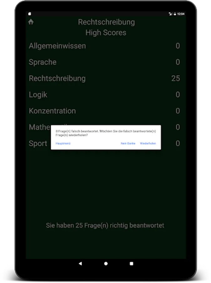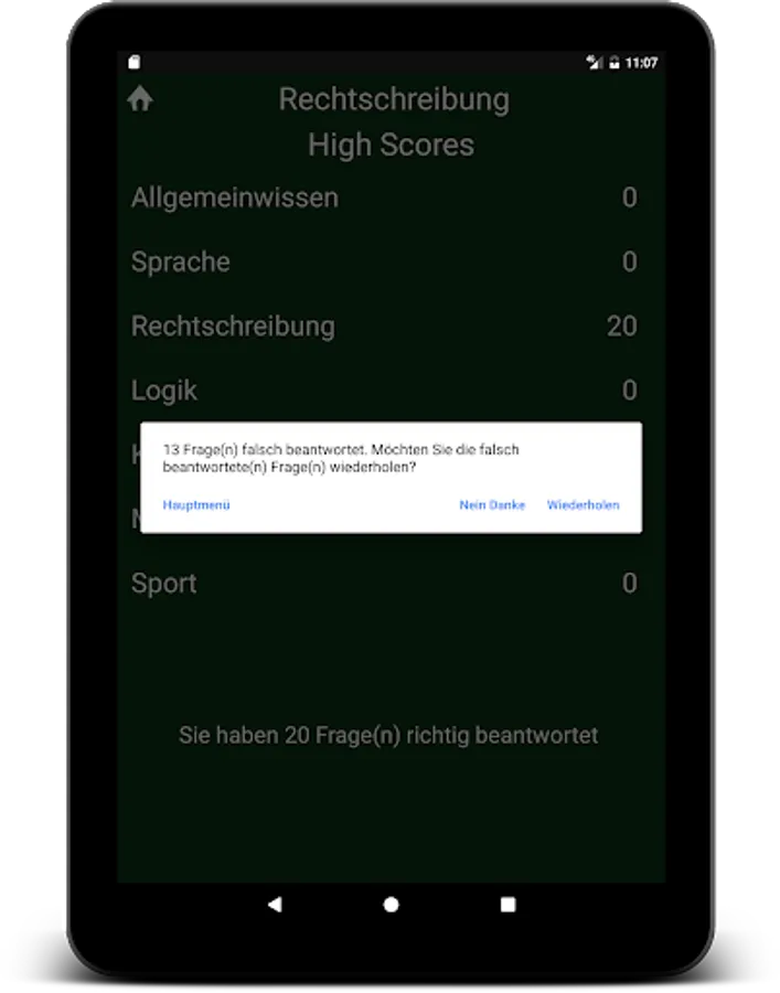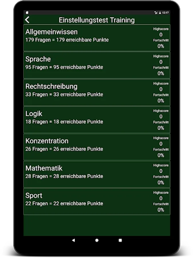 1. The questionnaires are divided into 7 topics. General knowledge, language, spelling, logic, concentration, math and sport.