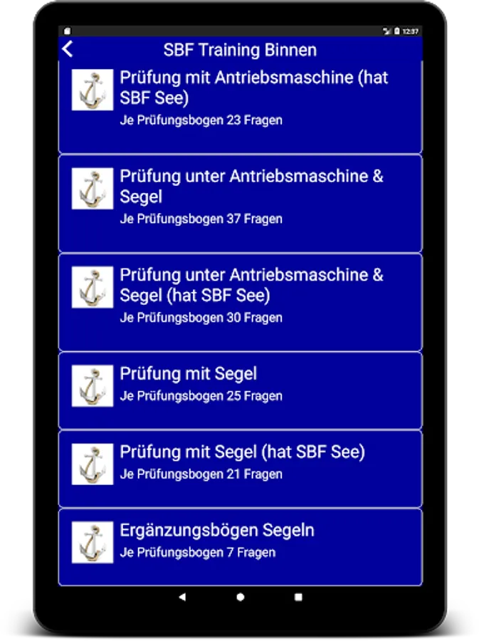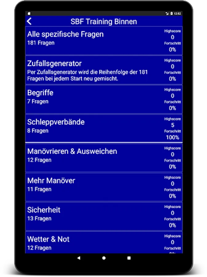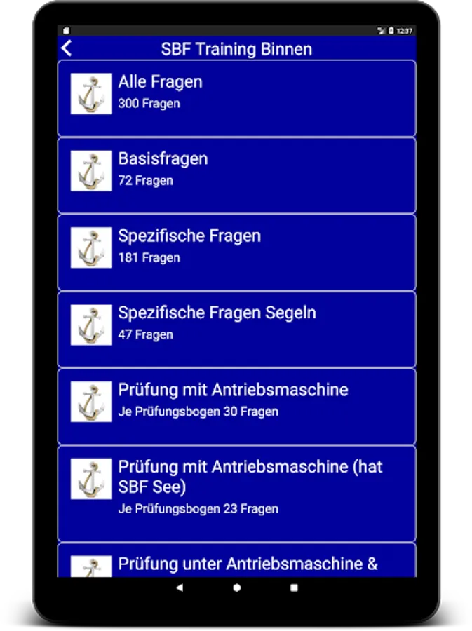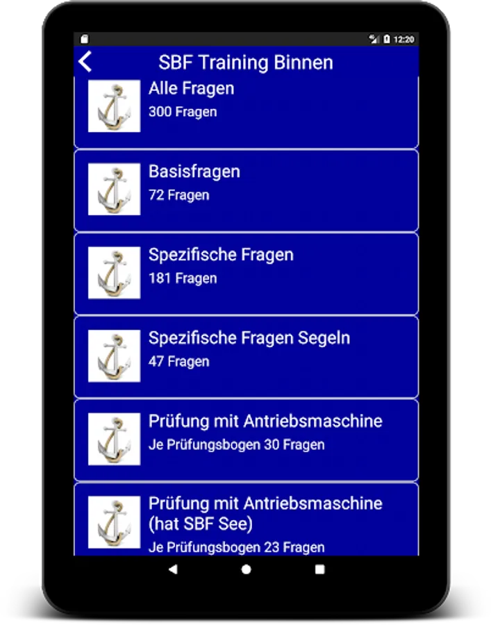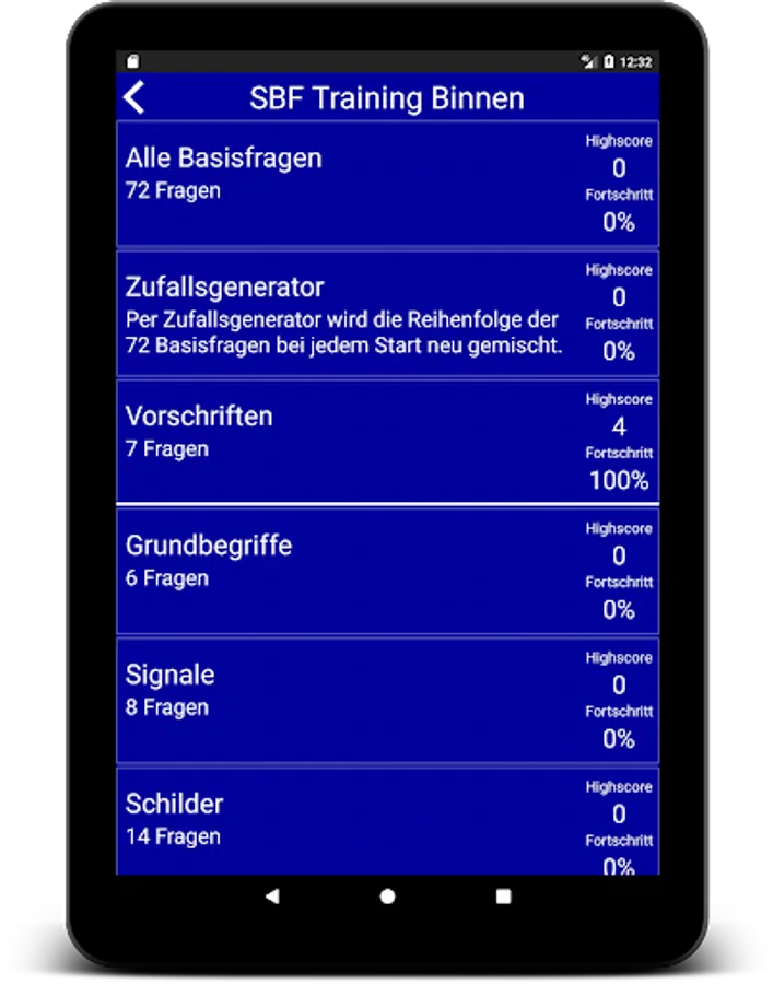 The SBF Trainer Binnen is based on the current and official questionnaire for the recreational boating license Binnen.