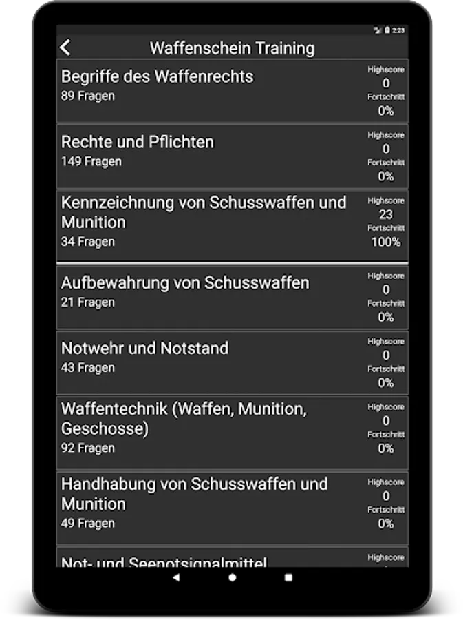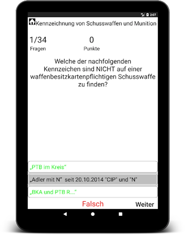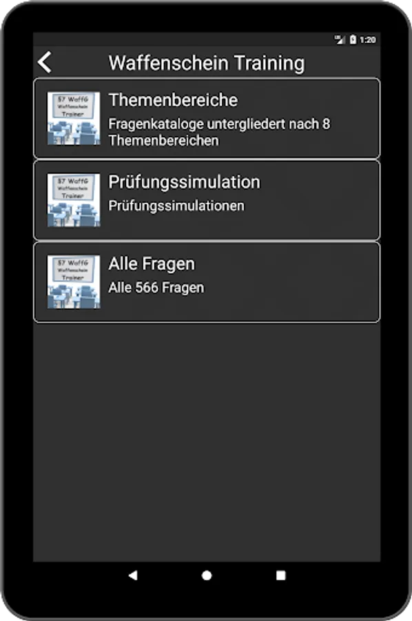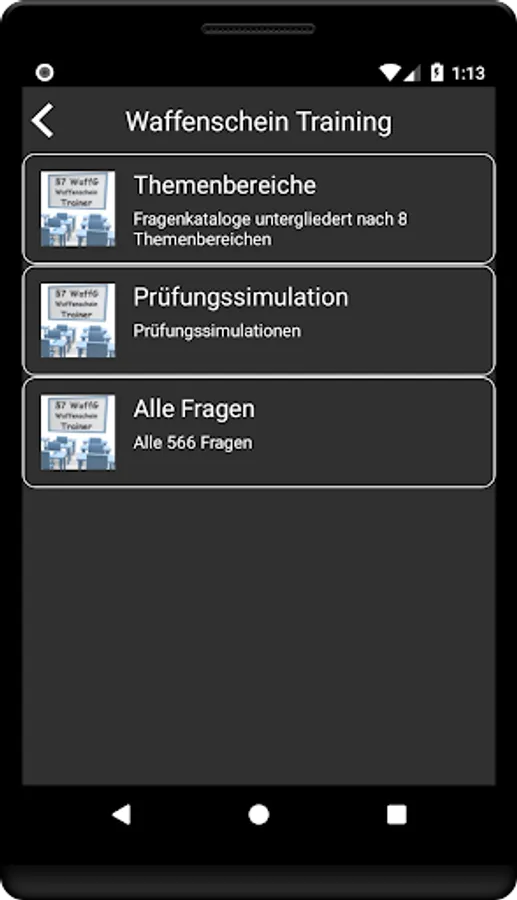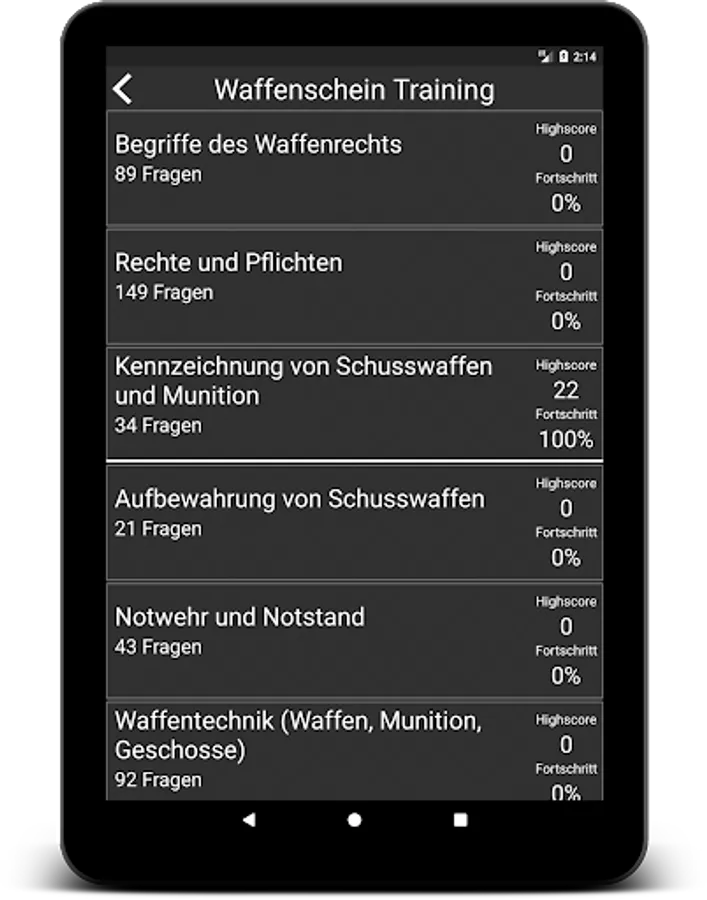 The weapons license trainer supports you in preparing for your written examination in weapons law in accordance with Section 7 of the Weapons Act.