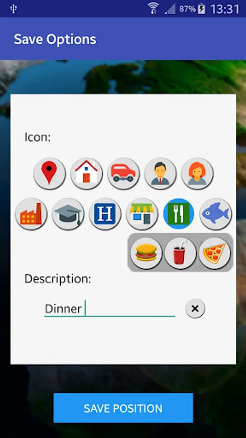 · Pressing the symbol position you will save your current position with a custom icon and description.