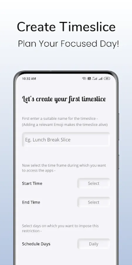 ✔️ Plan & Split your Daily Phone Usage by Creating Your Time Slices and Use Apps only during Assigned Intervals.