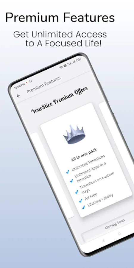 With the premium version, you can add unlimited slices, with unlimited apps in each one. You can even customize the number of days for your slices to activate. Also, the app becomes ad free with lifetime validity.