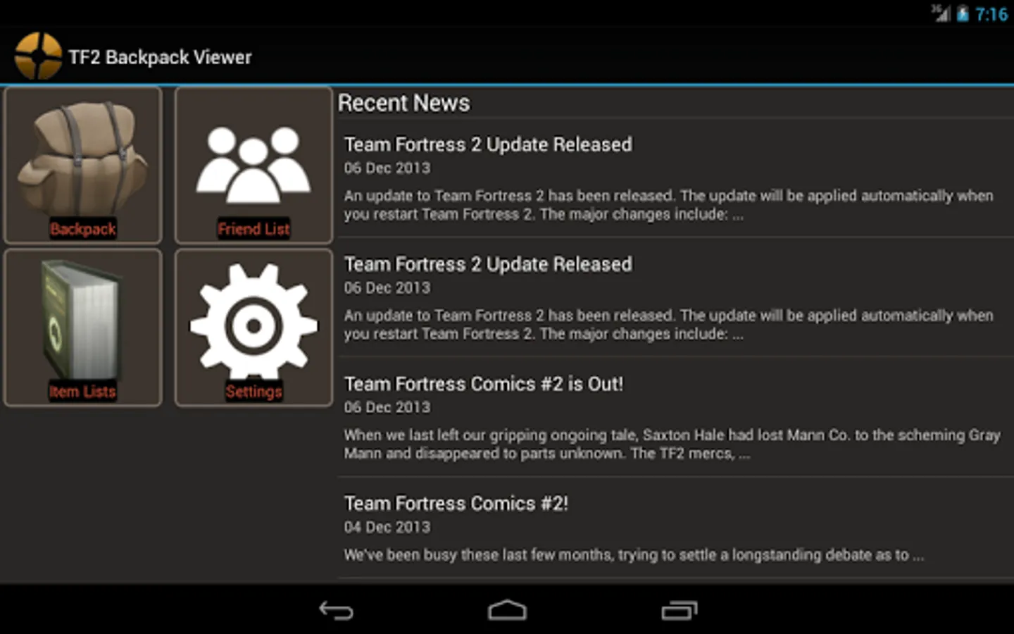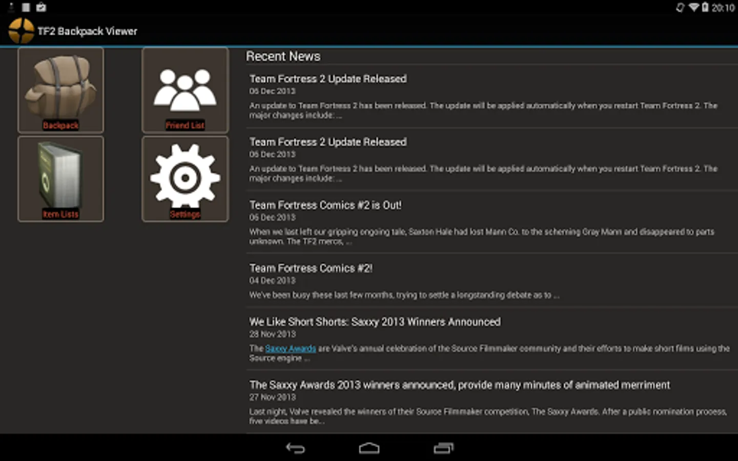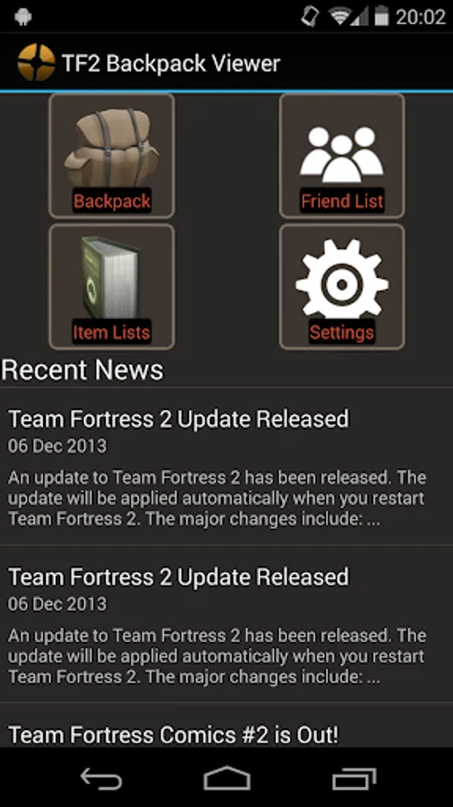 A TF2 backpack viewer that lets you view your own, your friends and everybody else's backpack in your phone!