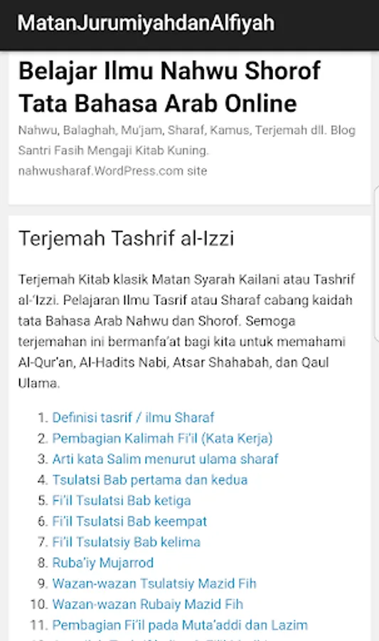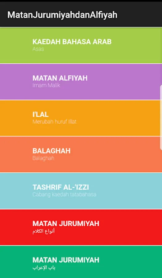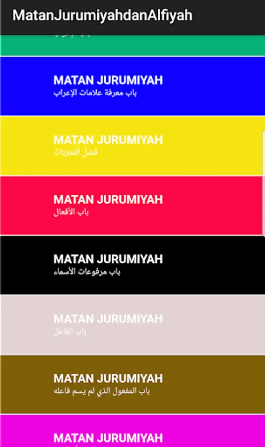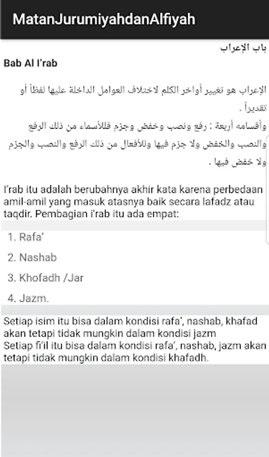 Matan Alfiyah dan Matan Jurumiyah adalah antara dua matan yang wajar dikuasai oleh penuntut ilmu Bahasa Arab.