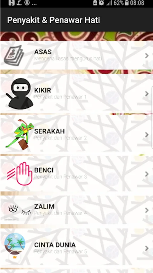 Apps ini merupakan panduan mudah mengenali penyakit hati, penyebabnya dan mengenali penawarnya.
