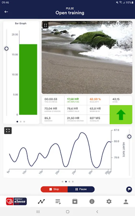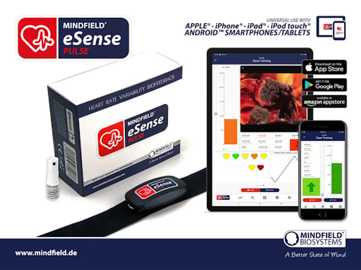 With the eSense Pulse, we focus on biofeedback training; i.e., improving heart rate variability to reduce your stress level.