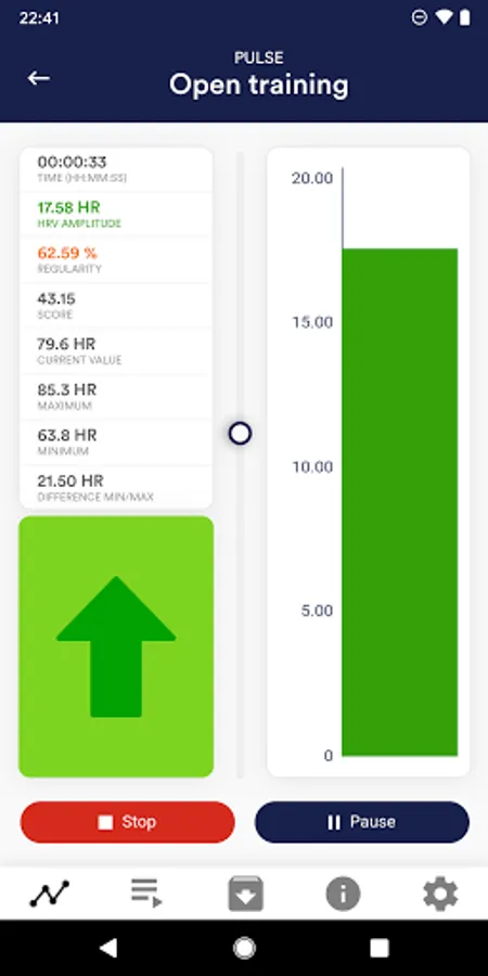 - Procedures: This feature incorporates training programs like guided relaxation, a stress test, defined biofeedback training, etc. into the app. Two demos are included, you can create as many procedures of your own, as you want.