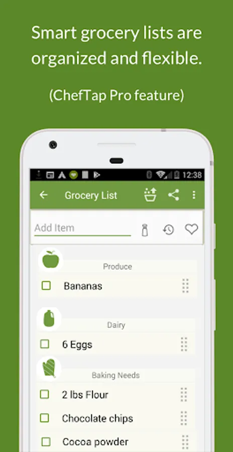 * Items are automatically categorized into aisles, such as “produce” or “spices”.