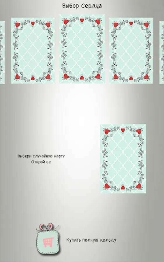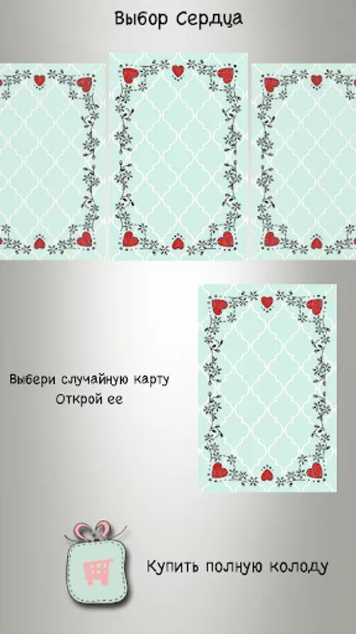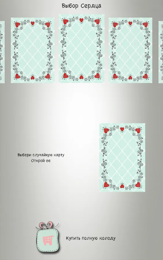 One deck seems to randomly select a card that you can use as clues in your way to love.