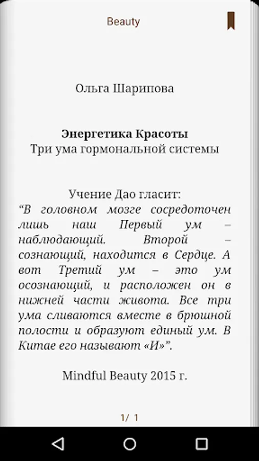 We present you Mindful Beauty application that provides access to books from the series "Power of Beauty", as well as useful e-book-and and practice of Mindful Beauty author of the project, Olga Sharipova: