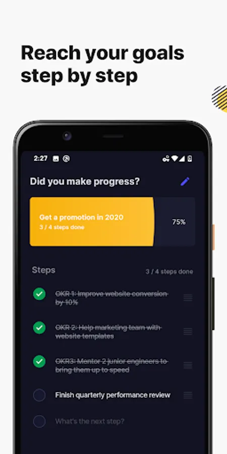 We've been searching for a well-designed goal tracker for years. The leading apps are either uninspirational or hard to use. So we decided to build one that's beautiful and functional.