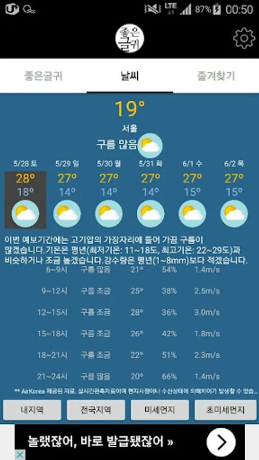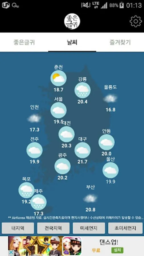 In meteorology and provide you with the weather, dust, micro dust information can also be easily verified.