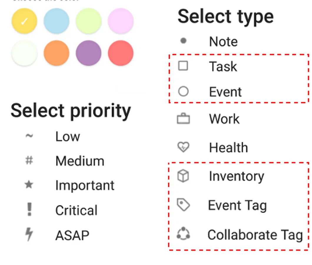 The notes can be categorized by color, priority, and types to give it a visual classification. Time spent on the task can also be tracked via a countdown timer.