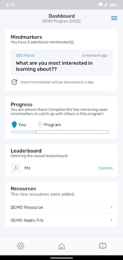Mindmarker is a cloud based training reinforcement program which is used to improve your workforce. The Mindmarker program automatically sends a variety of types of messages (videos, photos, questions, emails or other files) to a group of users at pre-set dates and times. These messages are called Mindmarkers and often include questions. This App will allow users to receive the Mindmarkers and monitor their progress and performance in the training program. Visit www.mindmarker.com for more information.