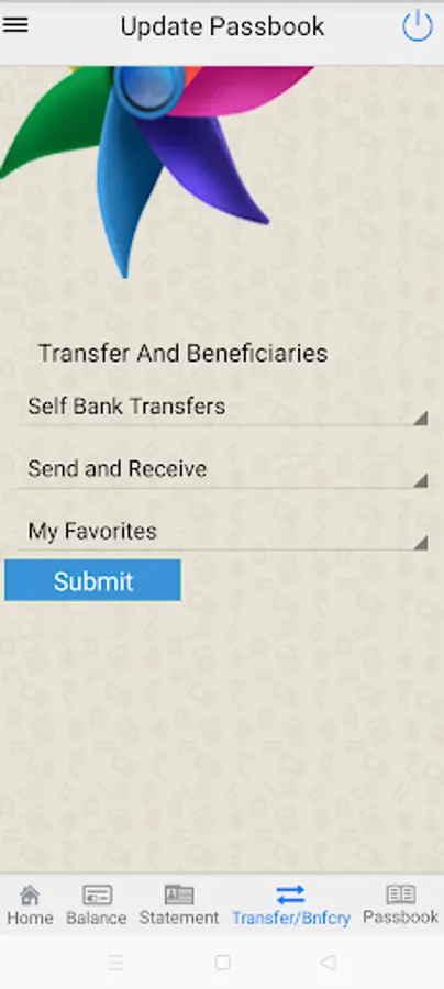 - Update Passbook: Allows the user to update his passbook at any time by simply pressing a button. When this button is pressed the mobile app accesses the bank’s databases and downloads the new transactions and updates the local database on the mobile phone.